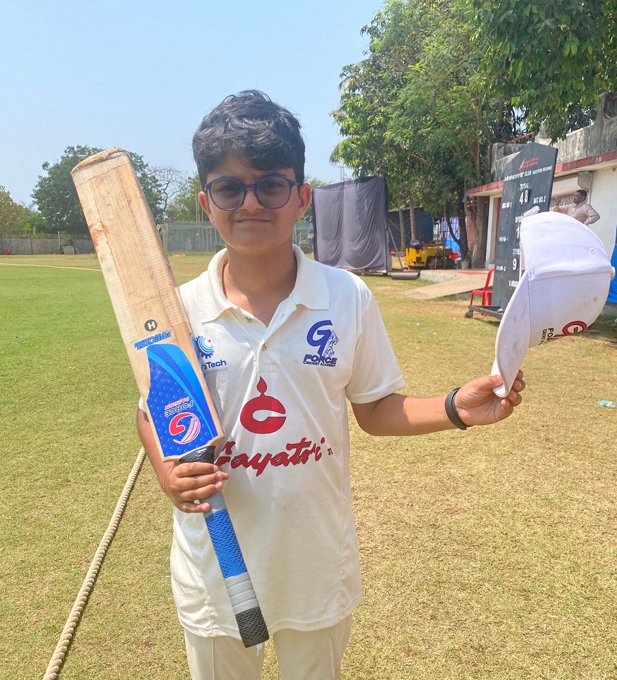 G Force’s Under-12 cricketer Jaimeek Shah showed his respect by scoring an